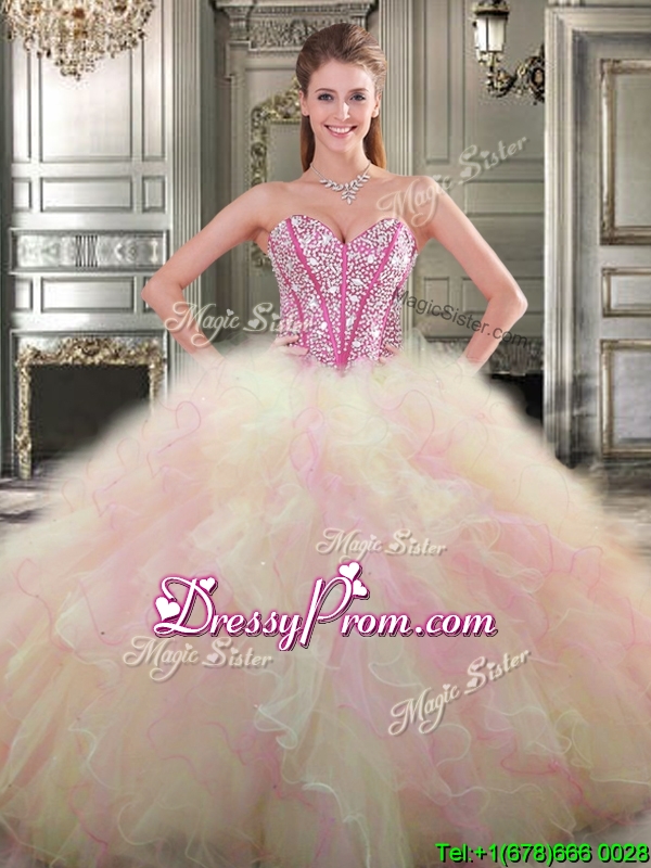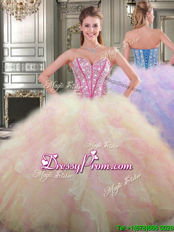 Neckline : SweetheartShown Color : Multi-colorSilhouette : Ball GownsSleeve Length : sleevelessHemline : floor lengthBack Detail : Lace upEmbellishment : Beading,RufflesOccasion : Military Ball,Sweet 16,QuinceaneraSeason : Spring,Summer,Fall,Winter
