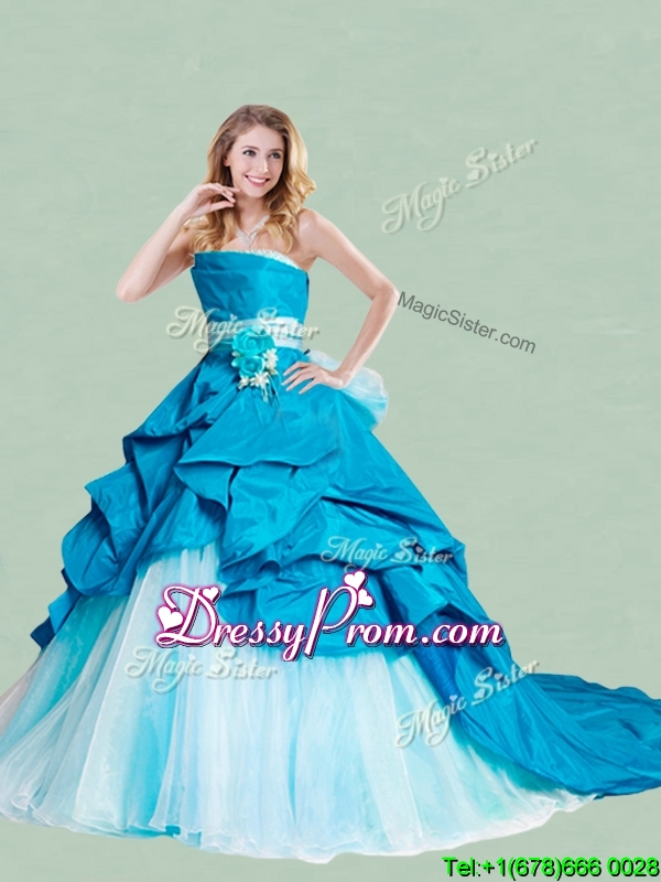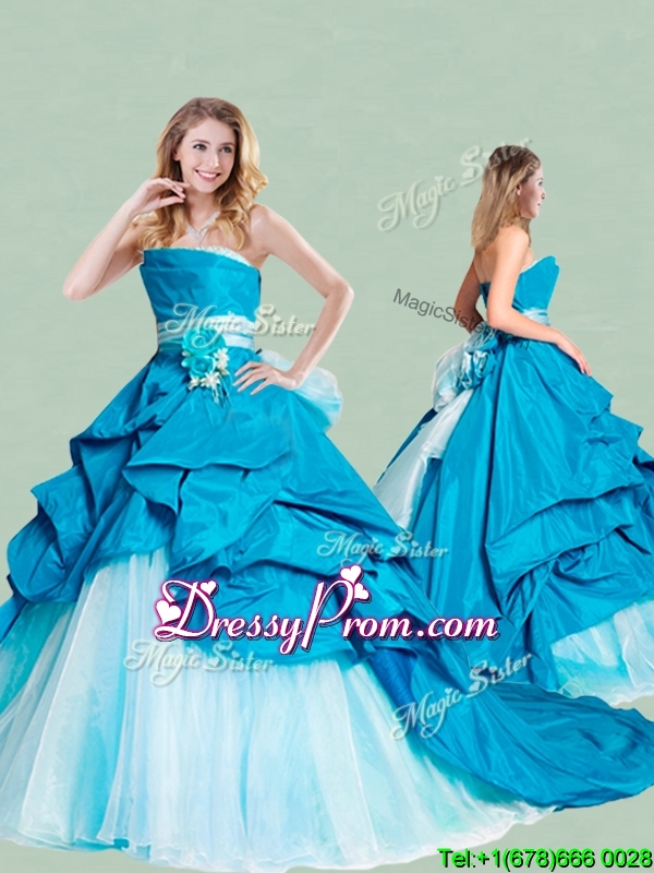 Neckline : StraplessSleeve Length : sleevelessHemline : with trainBack Detail : Lace upFabric : OrganzaEmbellishment : Ruffles,Hand Made FlowerOccasion : Military Ball,Sweet 16,QuinceaneraSeason : Spring,Summer,Fall,Winter