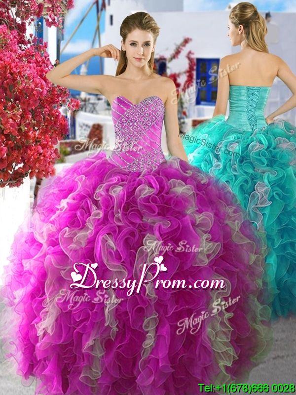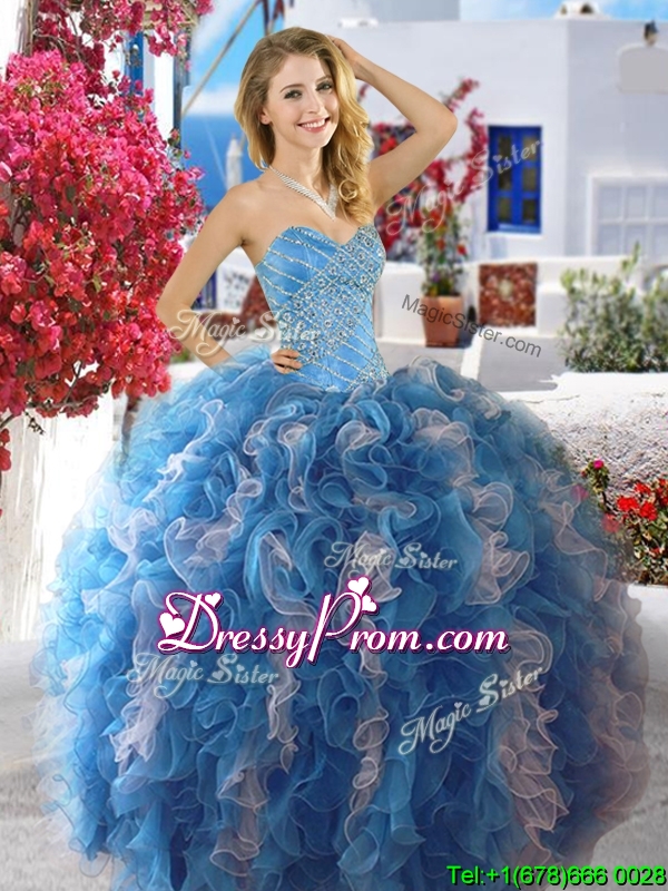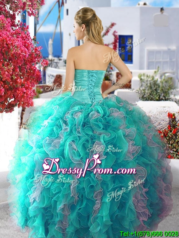 Neckline : SweetheartSleeve Length : sleevelessHemline : floor lengthBack Detail : Lace upFabric : OrganzaEmbellishment : Beading,RufflesOccasion : Military Ball,Sweet 16,QuinceaneraSeason : Spring,Summer,Fall,Winter