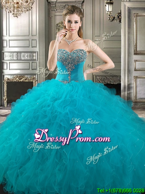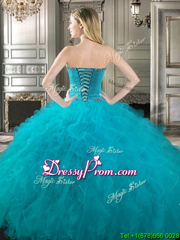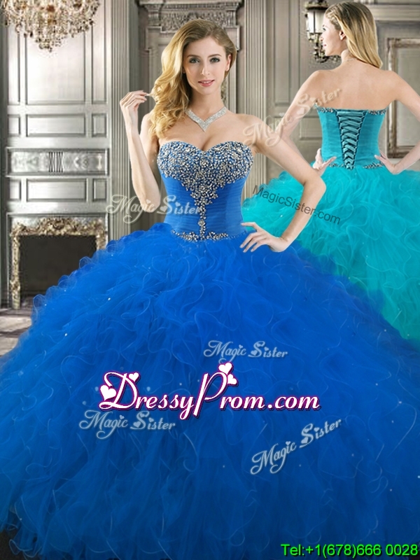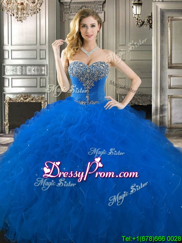 Popular Beaded Bodice and Ruffled Really Puffy Quinceanera Dress in Royal Blue