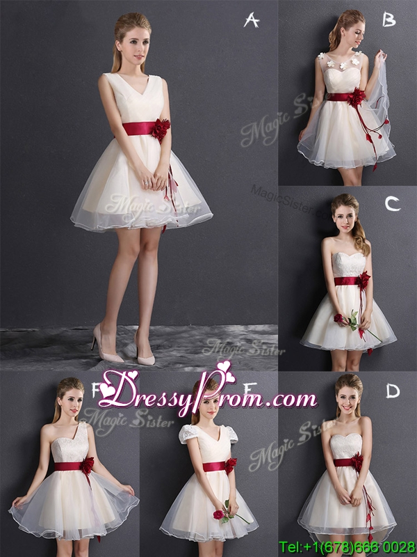 Neckline : ScoopShown Color : ChampagneSleeve Length : sleevelessHemline : mini lengthBack Detail : Lace upFabric : OrganzaEmbellishment : Appliques,Hand Made FlowerOccasion : Prom,Party,Cocktail,Homecoming,GraduationSeason : Spring,Summer,Fall