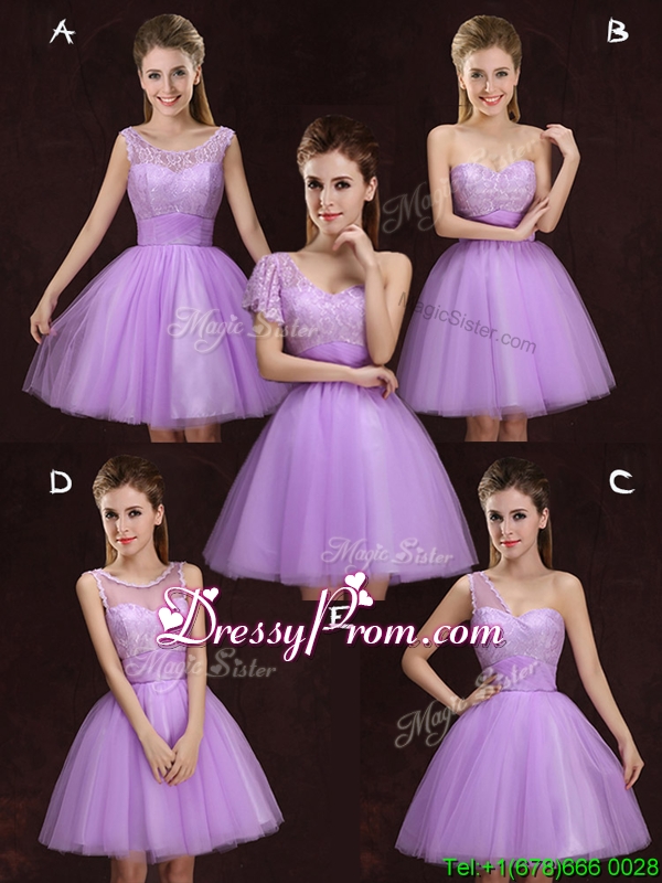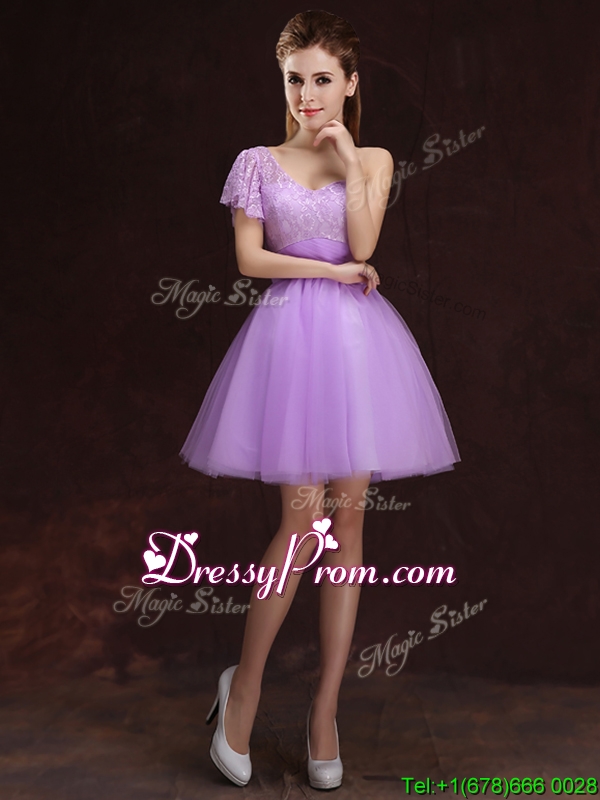 Sweet Tulle Lilac One Shoulder Dama Dress with Short Sleeve