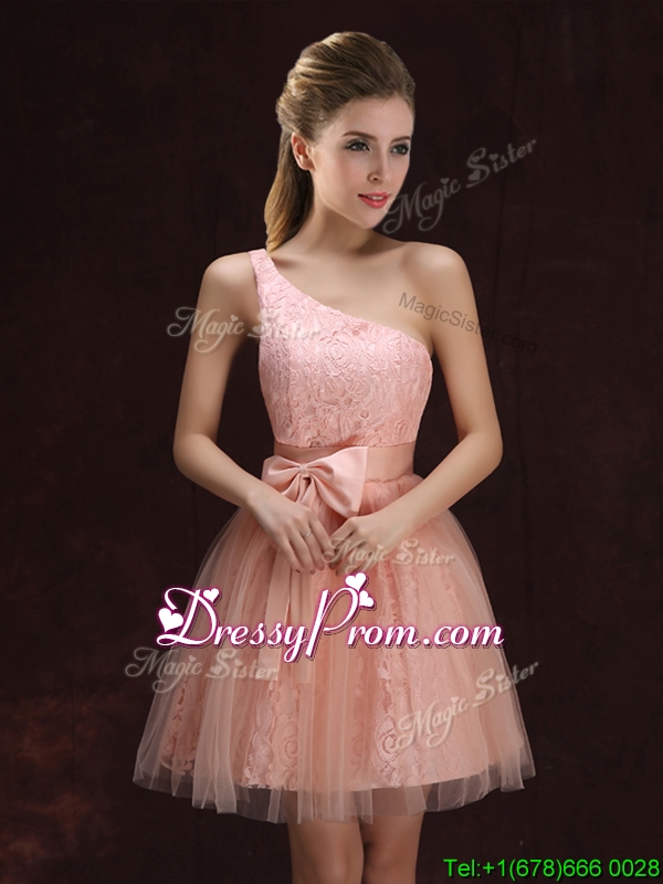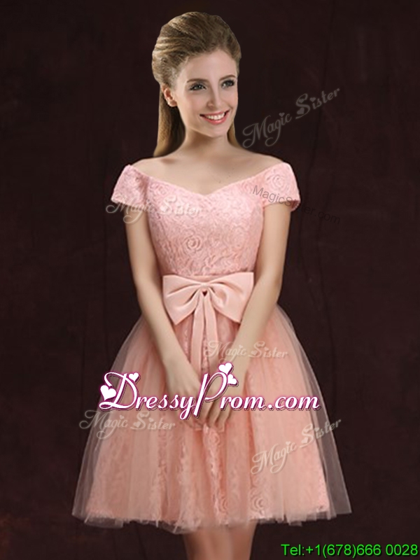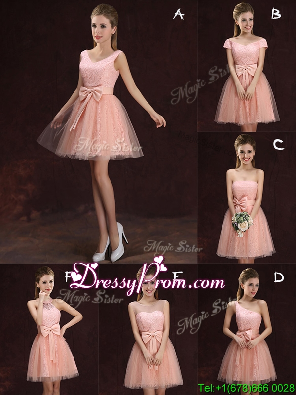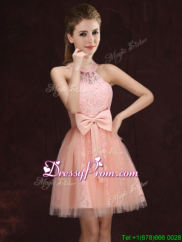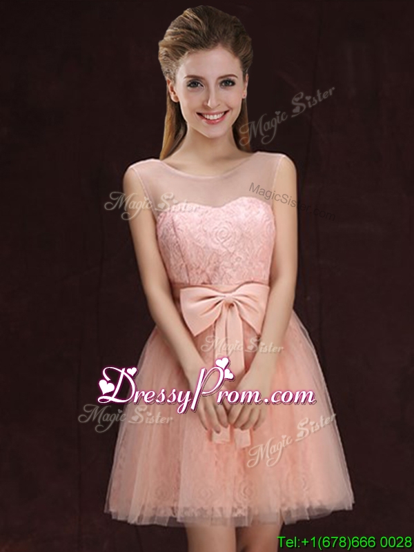 Neckline : V-neckShown Color : Pink Sleeve Length : sleevelessHemline : mini lengthBack Detail : Lace upFabric : Tulle,LaceEmbellishment : Lace,BowknotOccasion : Prom,Party,Cocktail,Homecoming,GraduationSeason : Spring,Summer,Fall