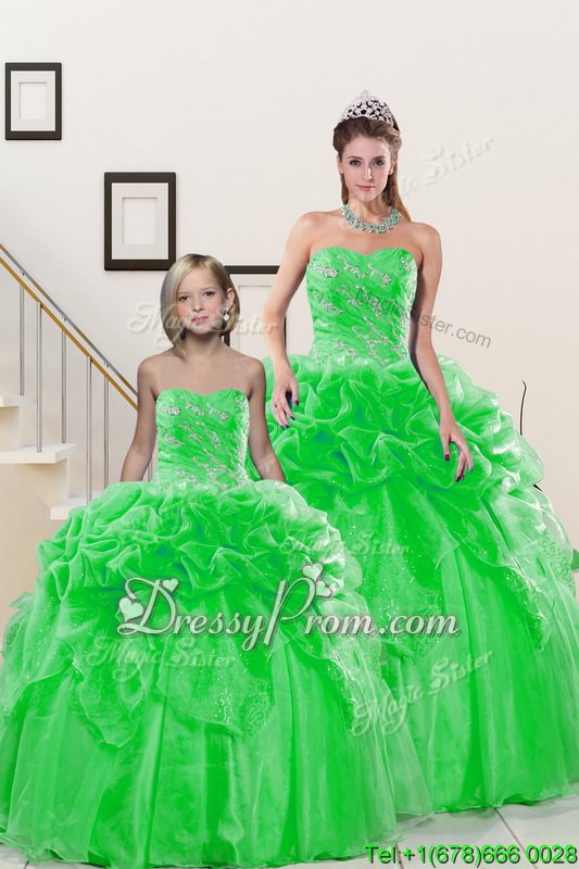 Neckline : SweetheartShown Color : Spring GreenSilhouette : Ball GownsSleeve Length : sleevelessHemline : floor lengthBack Detail : Lace upFabric : OrganzaEmbellishment : Beading,Pick UpsOccasion : Military Ball,Sweet 16,QuinceaneraSeason : Spring,Summer,Fall,Winter