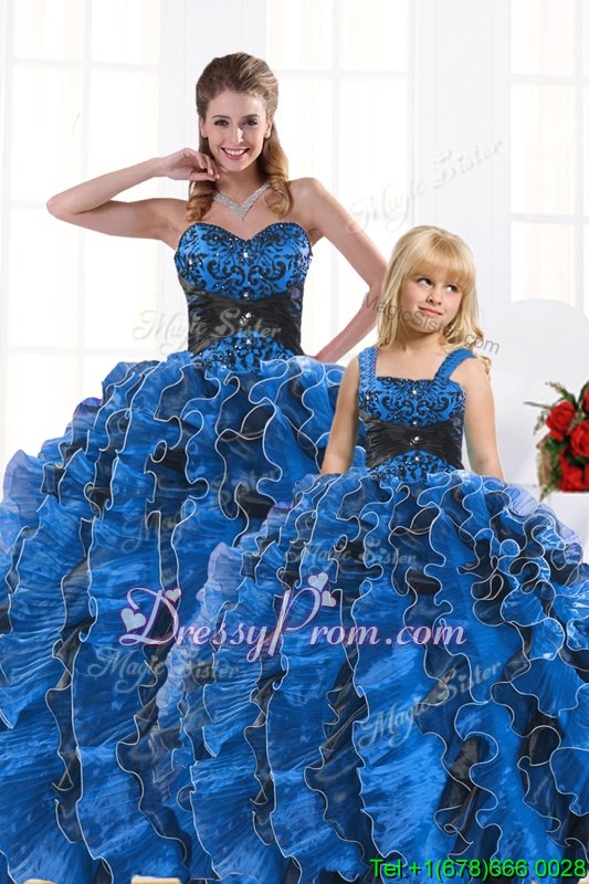 Neckline : SweetheartShown Color : Royal BlueSilhouette : Ball GownsSleeve Length : sleevelessHemline : floor lengthBack Detail : Lace upFabric : OrganzaEmbellishment : Beading,Appliques,RufflesOccasion : Military Ball,Sweet 16,QuinceaneraSeason : Spring,Summer,Fall,Winter
