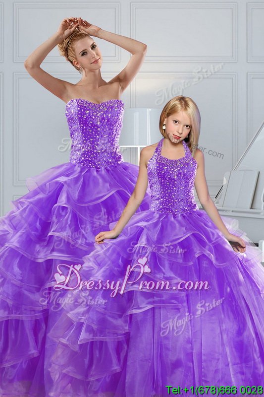 Neckline : SweetheartShown Color : LavenderSilhouette : Ball GownsSleeve Length : sleevelessHemline : floor lengthBack Detail : Lace upFabric : OrganzaEmbellishment : Beading,Ruffled LayersOccasion : Military Ball,Sweet 16,QuinceaneraSeason : Spring,Summer,Fall,Winter