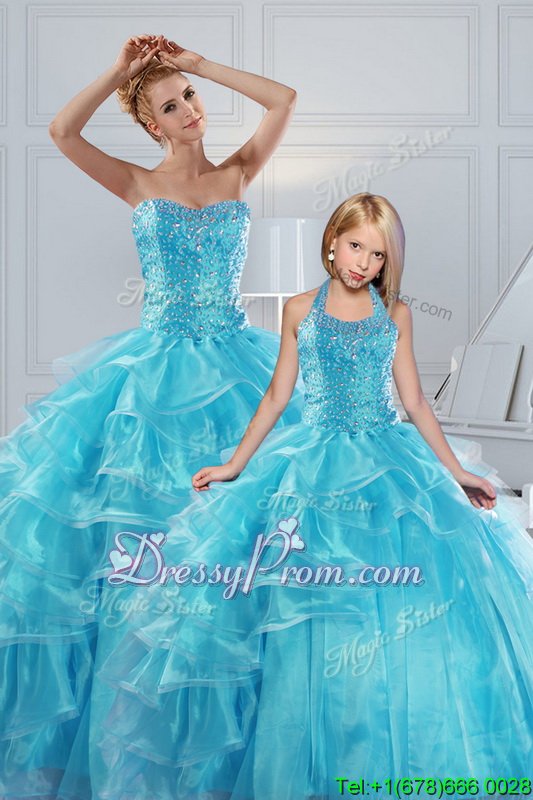 Neckline : SweetheartShown Color : Aqua BlueSilhouette : Ball GownsSleeve Length : sleevelessHemline : floor lengthBack Detail : Lace upFabric : OrganzaEmbellishment : Beading,Ruffled LayersOccasion : Military Ball,Sweet 16,QuinceaneraSeason : Spring,Summer,Fall,Winter