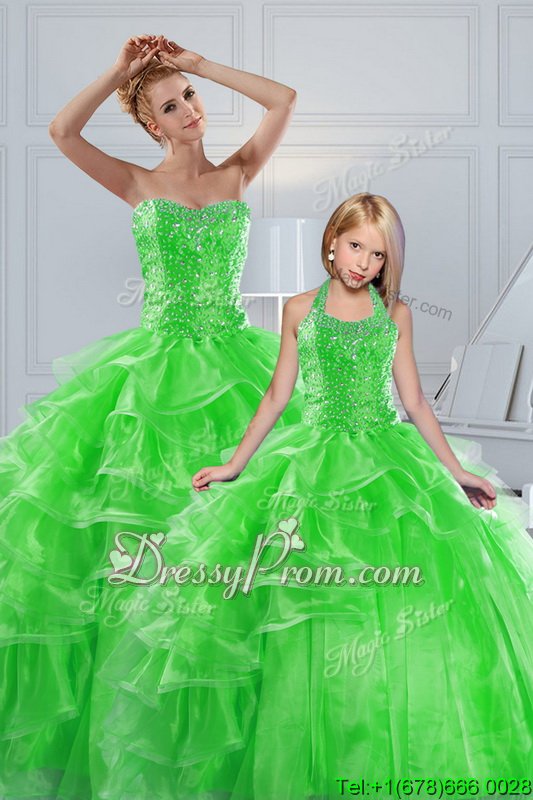 Neckline : SweetheartShown Color : Spring GreenSilhouette : Ball GownsSleeve Length : sleevelessHemline : floor lengthBack Detail : Lace upFabric : OrganzaEmbellishment : Beading,Ruffled LayersOccasion : Military Ball,Sweet 16,QuinceaneraSeason : Spring,Summer,Fall,Winter