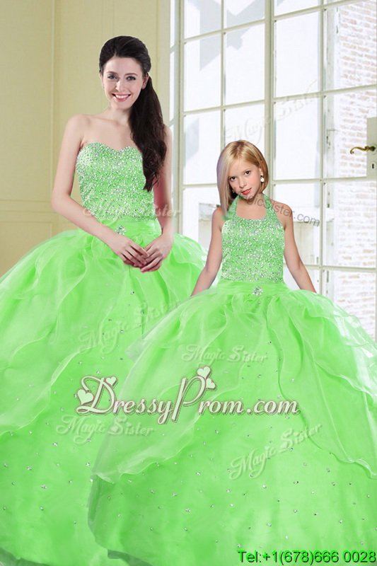 Neckline : SweetheartShown Color : GreenSilhouette : Ball GownsSleeve Length : sleevelessHemline : floor lengthBack Detail : Lace upFabric : OrganzaEmbellishment : Beading,SequinsOccasion : Military Ball,Sweet 16,QuinceaneraSeason : Spring,Summer,Fall,Winter