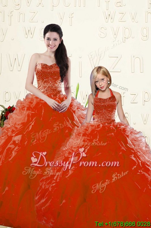 Neckline : SweetheartShown Color : RedSilhouette : Ball GownsSleeve Length : long sleevesHemline : floor lengthBack Detail : Lace upFabric : OrganzaEmbellishment : Beading,RufflesOccasion : Military Ball,Sweet 16,QuinceaneraSeason : Spring,Summer,Winter