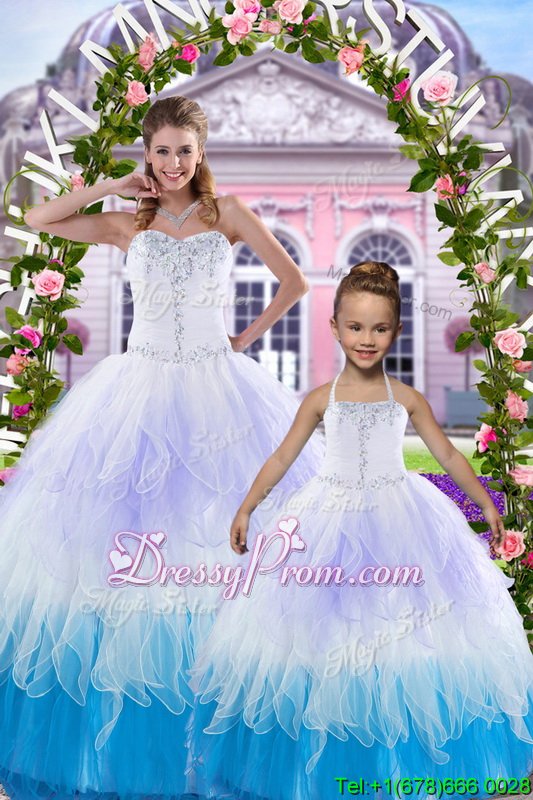 Enchanting Beading Sweet 16 Dress Multi-color Lace Up Sleeveless Floor Length