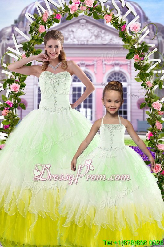 Designer Multi-color Tulle Lace Up Sweetheart Sleeveless Floor Length Sweet 16 Dress Beading