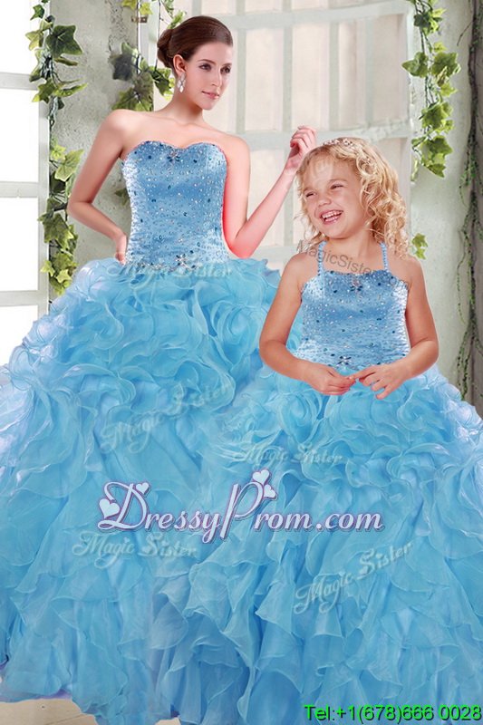 Fantastic Aqua Blue Sleeveless Beading and Ruffles Floor Length Quinceanera Gowns