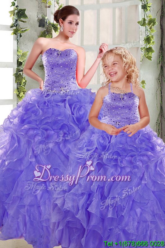 Neckline : StraplessShown Color : LavenderSilhouette : Ball GownsSleeve Length : sleevelessHemline : floor lengthBack Detail : Lace upFabric : OrganzaEmbellishment : Beading,RufflesOccasion : Military Ball,Sweet 16,QuinceaneraSeason : Spring,Summer,Fall,Winter