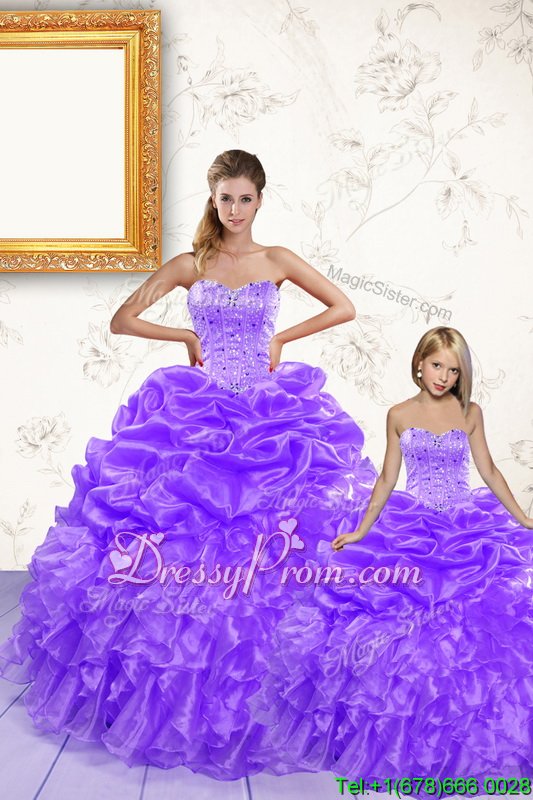 Latest Lavender Sweet 16 Quinceanera Dress Military Ball and Sweet 16 and Quinceanera and For withBeading and Ruffles and Pick Ups Sweetheart Sleeveless Lace Up