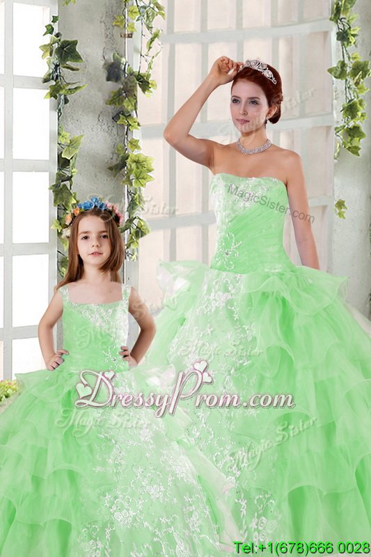 Neckline : StraplessShown Color : Spring GreenSilhouette : Ball GownsSleeve Length : sleevelessHemline : floor lengthBack Detail : Lace upFabric : OrganzaEmbellishment : Beading,Ruffled Layers,RuchingOccasion : Military Ball,Sweet 16,QuinceaneraSeason : Spring,Summer,Fall,Winter