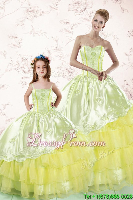 Neckline : SweetheartShown Color : Light YellowSilhouette : Ball GownsSleeve Length : sleevelessHemline : floor lengthBack Detail : Lace upFabric : OrganzaEmbellishment : Embroidery,Ruffled LayersOccasion : Military Ball,Sweet 16,QuinceaneraSeason : Spring,Summer,Fall,Winter