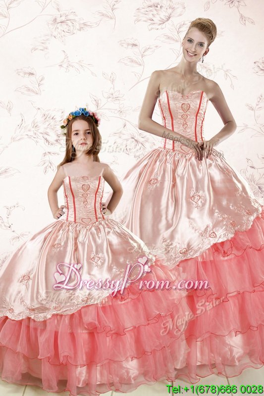 Neckline : SweetheartShown Color : Watermelon RedSilhouette : Ball GownsSleeve Length : sleevelessHemline : floor lengthBack Detail : Lace upFabric : OrganzaEmbellishment : Embroidery,Ruffled LayersOccasion : Military Ball,Sweet 16,QuinceaneraSeason : Spring,Summer,Fall,Winter
