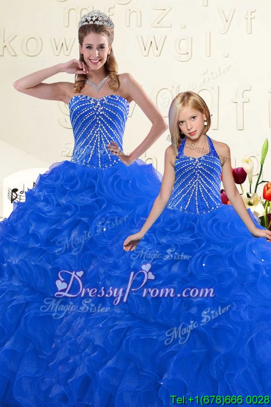 Lovely Blue Lace Up Sweet 16 Dresses Beading and Ruffles Sleeveless Floor Length
