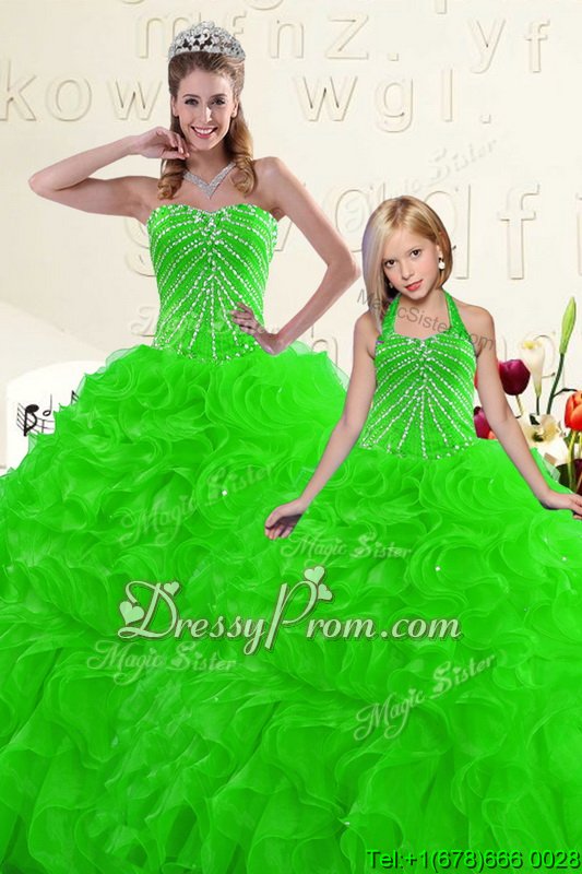 Neckline : SweetheartShown Color : GreenSilhouette : Ball GownsSleeve Length : sleevelessHemline : floor lengthBack Detail : Lace upFabric : OrganzaEmbellishment : Beading,RufflesOccasion : Military Ball,Sweet 16,QuinceaneraSeason : Spring,Summer,Fall,Winter