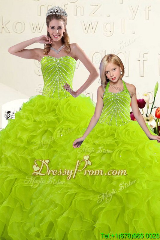 Neckline : SweetheartShown Color : Yellow GreenSilhouette : Ball GownsSleeve Length : sleevelessHemline : floor lengthBack Detail : Lace upFabric : OrganzaEmbellishment : Beading,RufflesOccasion : Military Ball,Sweet 16,QuinceaneraSeason : Spring,Summer,Fall,Winter