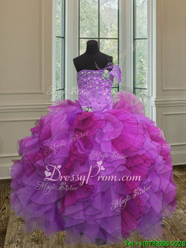 Neckline : StraplessShown Color : Multi-colorSilhouette : Ball GownsSleeve Length : sleevelessHemline : floor lengthBack Detail : Lace upFabric : OrganzaEmbellishment : Beading,RufflesOccasion : Military Ball,Sweet 16,QuinceaneraSeason : Spring,Summer,Fall,Winter