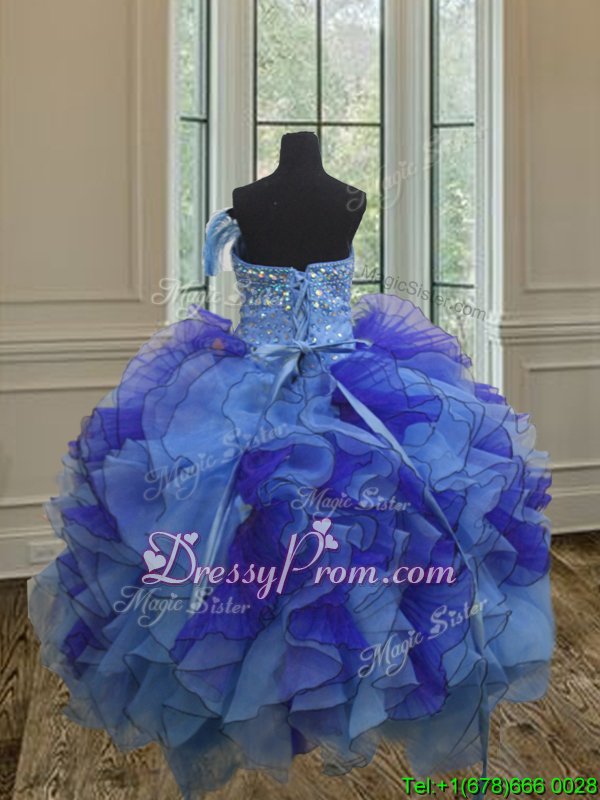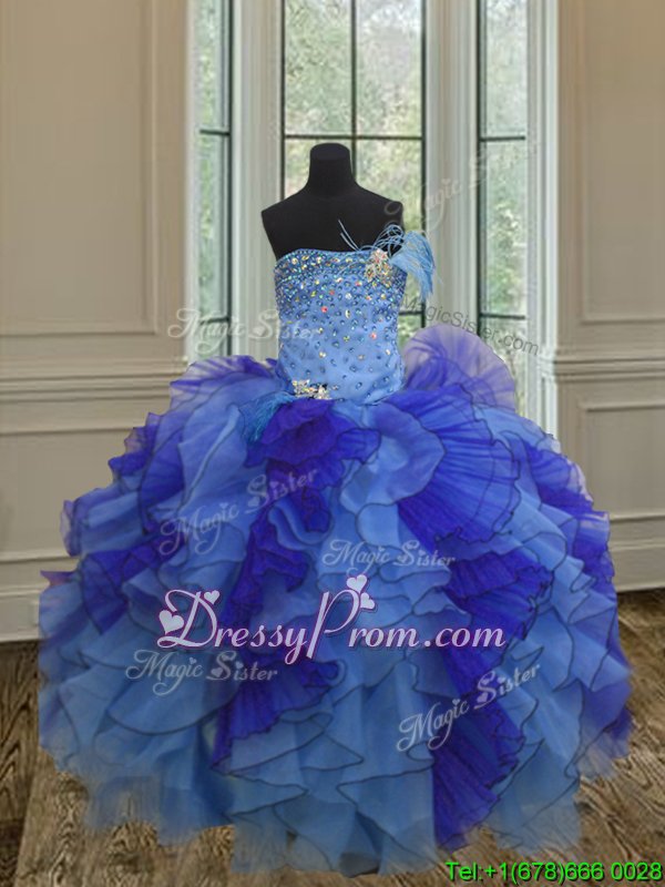 Customized Multi-color Ball Gowns Strapless Sleeveless Organza Floor Length Lace Up Beading and Ruffles 15th Birthday Dress