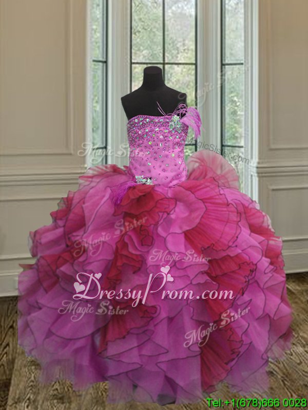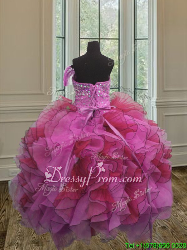 Dynamic Floor Length Lace Up Quinceanera Dress Multi-color and In forMilitary Ball and Sweet 16 and Quinceanera withBeading and Ruffles