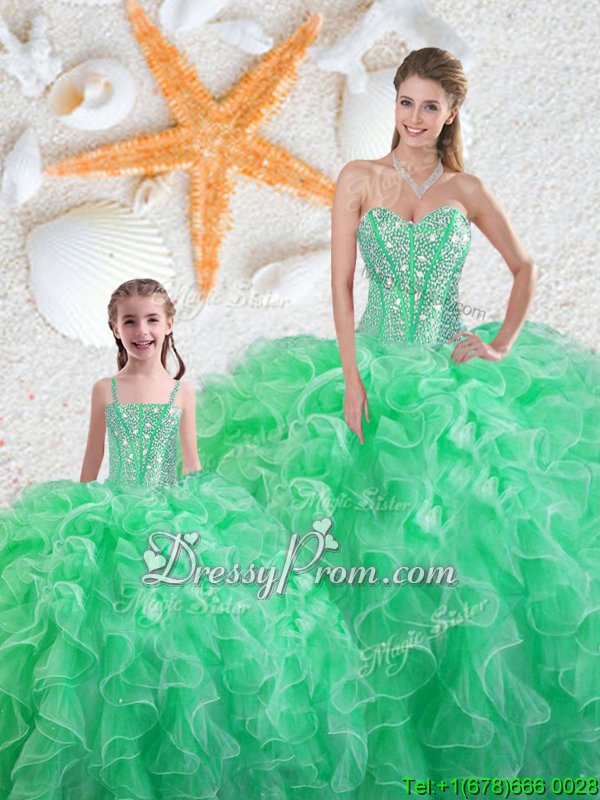 Hot Sale Floor Length Apple Green Sweet 16 Dresses Organza Sleeveless Spring and Summer and Fall and Winter Beading and Ruffles