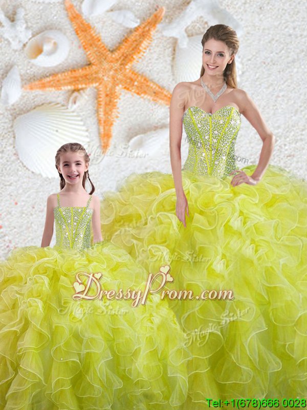 Neckline : SweetheartShown Color : Yellow GreenSilhouette : Ball GownsSleeve Length : sleevelessHemline : floor lengthBack Detail : Lace upFabric : OrganzaEmbellishment : Beading,RufflesOccasion : Military Ball,Sweet 16,QuinceaneraSeason : Spring,Summer,Fall,Winter