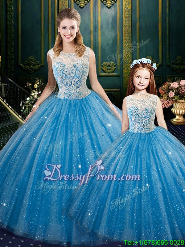 Neckline : High-neckShown Color : Aqua BlueSilhouette : Ball GownsSleeve Length : sleevelessHemline : floor lengthBack Detail : Lace upFabric : TulleEmbellishment : EmbroideryOccasion : Military Ball,Sweet 16,QuinceaneraSeason : Spring,Summer,Fall,Winter