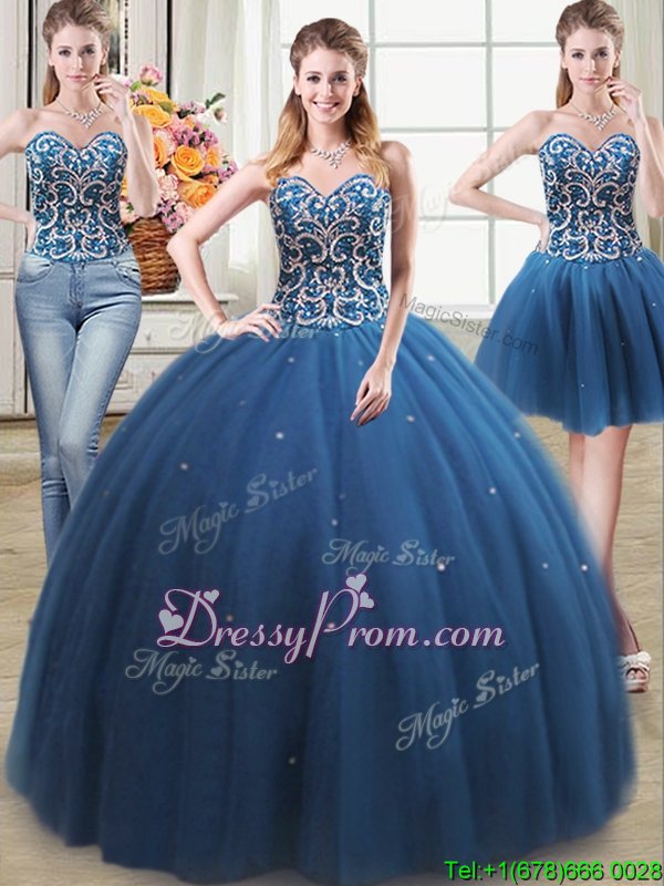 Glamorous Teal Tulle Lace Up Sweetheart Sleeveless Floor Length Quinceanera Dress Beading