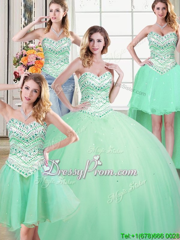 Neckline : SweetheartShown Color : Apple GreenSilhouette : Ball GownsSleeve Length : sleevelessHemline : floor lengthBack Detail : Lace upFabric : TulleEmbellishment : BeadingOccasion : Military Ball,Sweet 16,QuinceaneraSeason : Spring,Summer,Fall