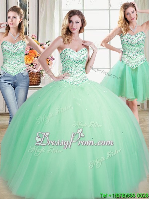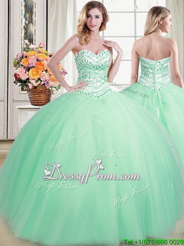 Neckline : SweetheartShown Color : Apple GreenSilhouette : Ball GownsSleeve Length : sleevelessHemline : floor lengthBack Detail : Lace upFabric : TulleEmbellishment : BeadingOccasion : Military Ball,Sweet 16,QuinceaneraSeason : Spring,Summer,Fall,Winter