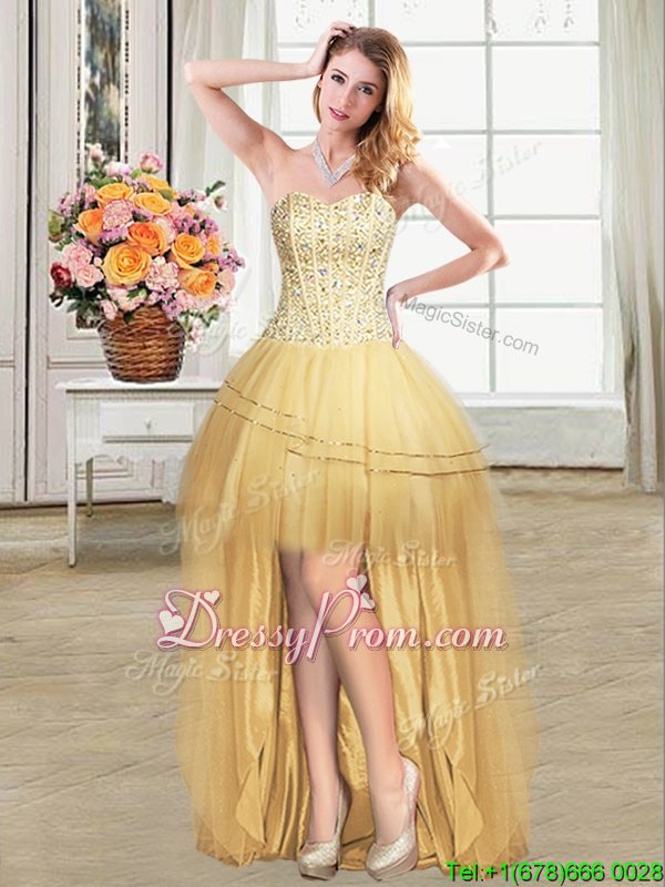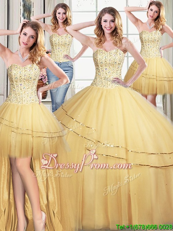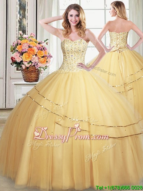 High Class Gold Quince Ball Gowns Military Ball and Sweet 16 and Quinceanera and For withBeading and Sequins Sweetheart Sleeveless Lace Up