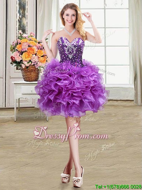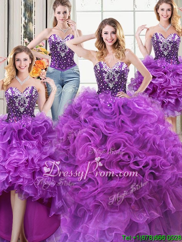 Latest Eggplant Purple Sweetheart Neckline Beading and Ruffles Quinceanera Dresses Sleeveless Lace Up