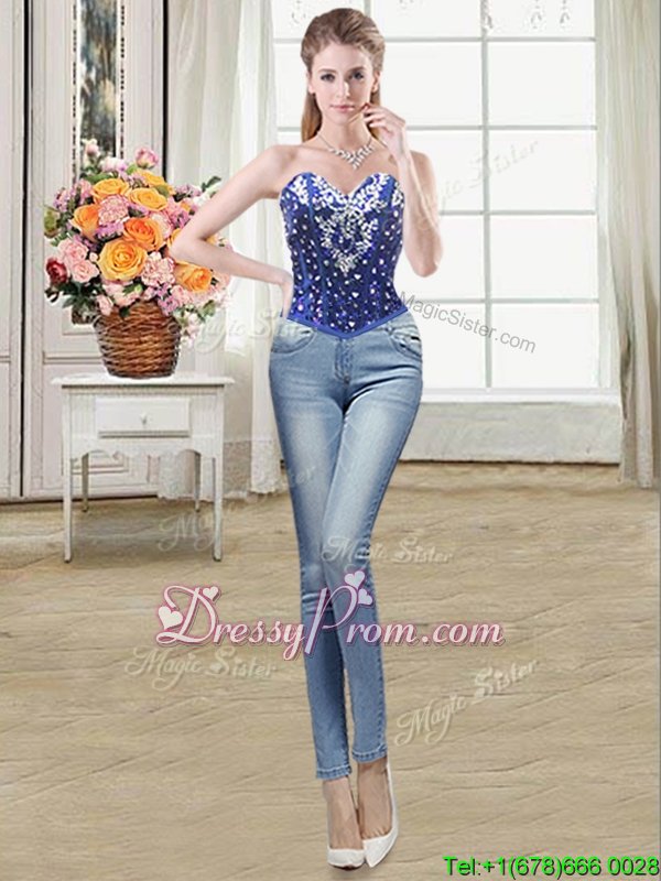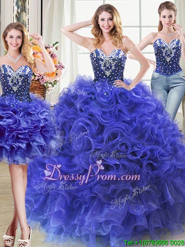 Hot Selling Beading and Ruffles Quinceanera Gowns Royal Blue Lace Up Sleeveless Floor Length