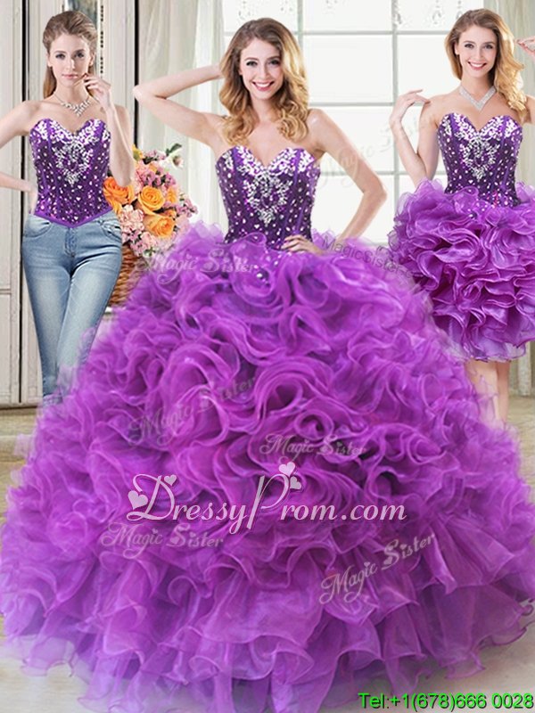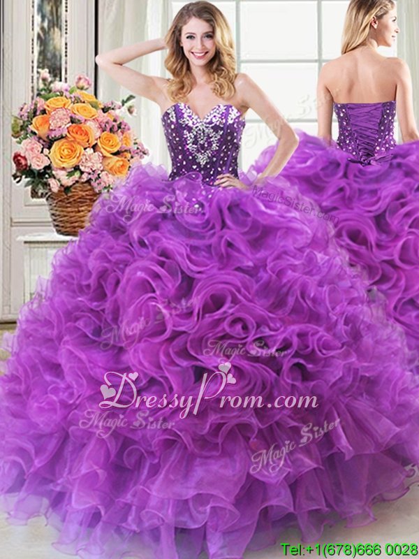 Neckline : SweetheartShown Color : Eggplant PurpleSilhouette : Ball GownsSleeve Length : sleevelessHemline : floor lengthBack Detail : Lace upFabric : OrganzaEmbellishment : Beading,RufflesOccasion : Military Ball,Sweet 16,QuinceaneraSeason : Spring,Summer,Fall,Winter