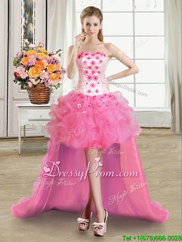Best Selling Hot Pink Sleeveless Beading and Appliques and Ruffles Floor Length 15 Quinceanera Dress