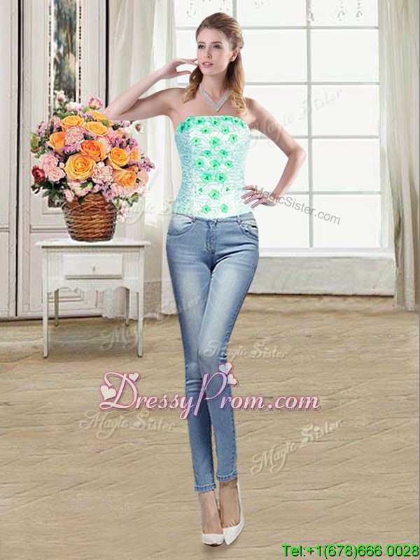 Sexy Floor Length Turquoise Sweet 16 Dress Strapless Sleeveless Lace Up