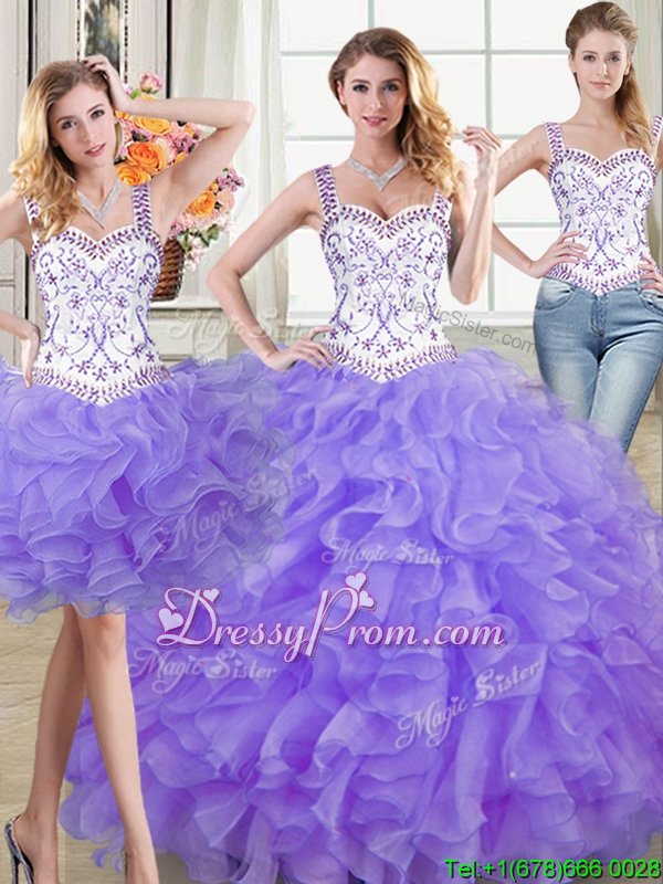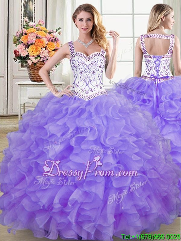 Lovely Lavender Sleeveless Beading and Lace and Ruffles Floor Length Quinceanera Gown