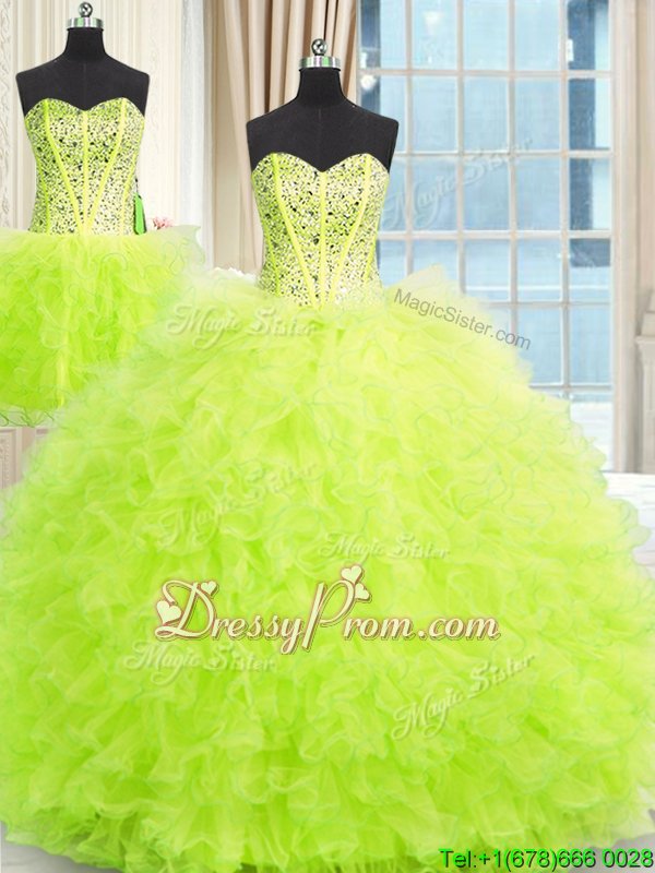 High Class Spring Green Sleeveless Tulle Lace Up Ball Gown Prom Dress forMilitary Ball and Sweet 16 and Quinceanera