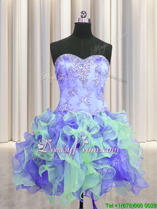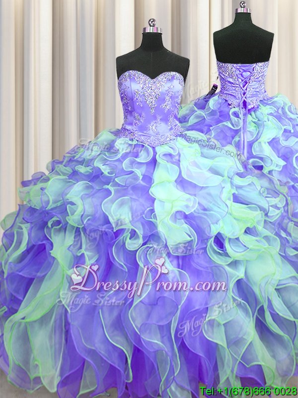 Neckline : SweetheartShown Color : Multi-colorSilhouette : Ball GownsSleeve Length : sleevelessHemline : floor lengthBack Detail : Lace upFabric : OrganzaEmbellishment : Beading,Appliques,RufflesOccasion : Military Ball,Sweet 16,QuinceaneraSeason : Spring,Summer,Fall,Winter