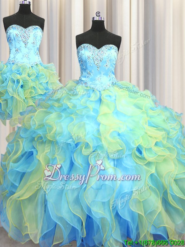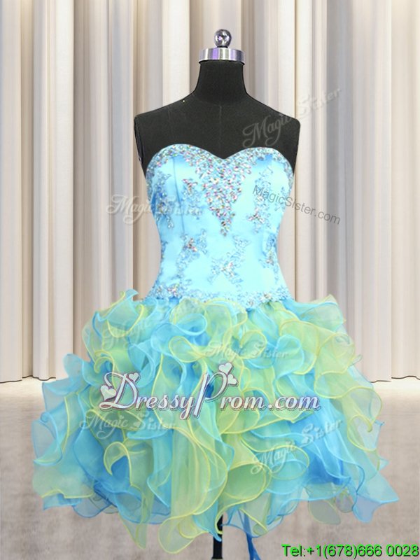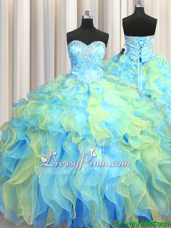 Multi-color Sweetheart Lace Up Beading and Appliques and Ruffles Quinceanera Gowns Sleeveless