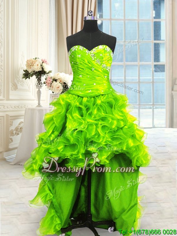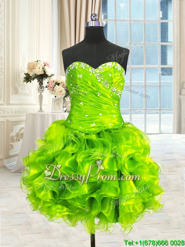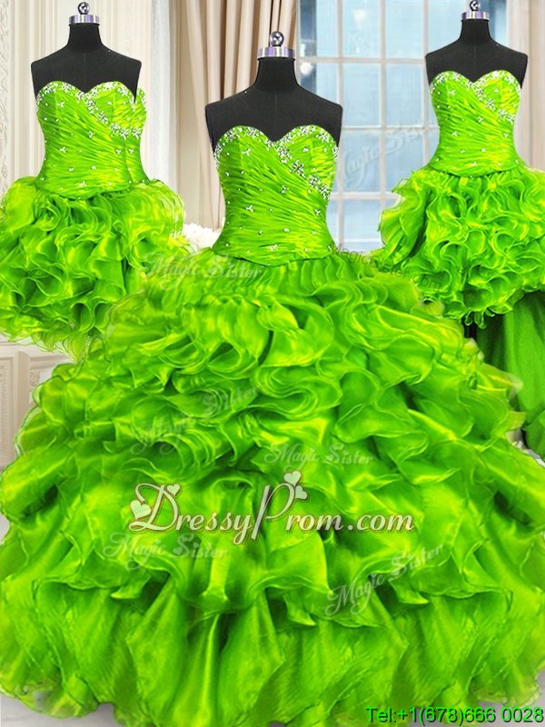 Graceful Spring Green Sweetheart Lace Up Beading and Ruffles and Ruching Quince Ball Gowns Sleeveless