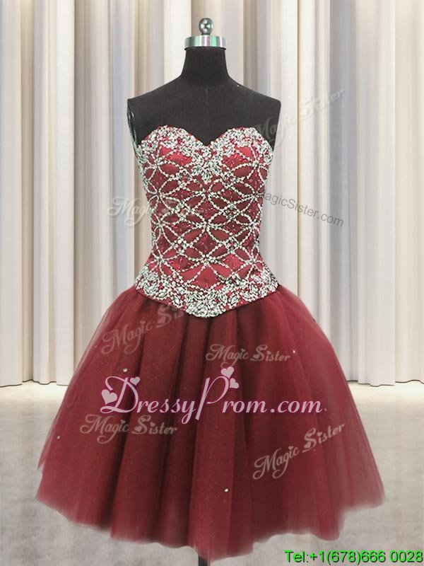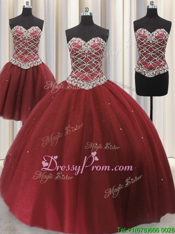Neckline : SweetheartShown Color : BurgundySilhouette : Ball GownsSleeve Length : sleevelessHemline : floor lengthBack Detail : Lace upFabric : TulleEmbellishment : Beading,SequinsOccasion : Military Ball,Sweet 16,QuinceaneraSeason : Spring,Summer,Fall,Winter