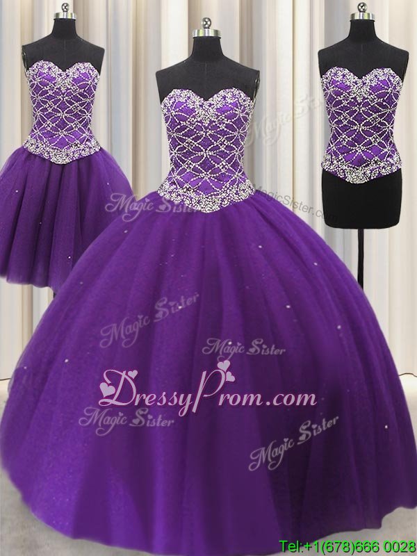 Neckline : SweetheartShown Color : Eggplant PurpleSilhouette : Ball GownsSleeve Length : sleevelessHemline : floor lengthBack Detail : Lace upFabric : TulleEmbellishment : Beading,SequinsOccasion : Military Ball,Sweet 16,QuinceaneraSeason : Spring,Summer,Fall,Winter