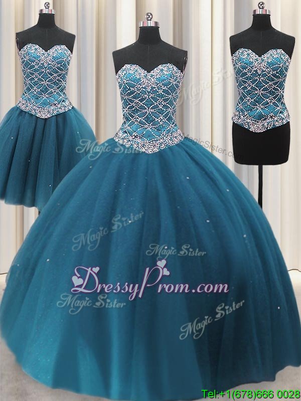 Neckline : SweetheartShown Color : Teal Silhouette : Ball GownsSleeve Length : sleevelessHemline : floor lengthBack Detail : Lace upFabric : TulleEmbellishment : Beading,RufflesOccasion : Military Ball,Sweet 16,QuinceaneraSeason : Spring,Summer,Fall,Winter