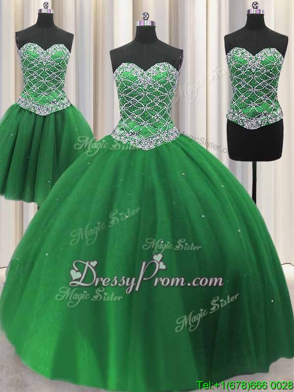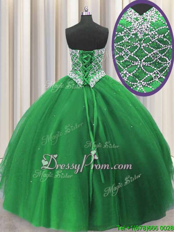 Neckline : SweetheartShown Color : GreenSilhouette : Ball GownsSleeve Length : sleevelessHemline : floor lengthBack Detail : Lace upFabric : TulleEmbellishment : Beading,SequinsOccasion : Military Ball,Sweet 16,QuinceaneraSeason : Spring,Summer,Fall,Winter