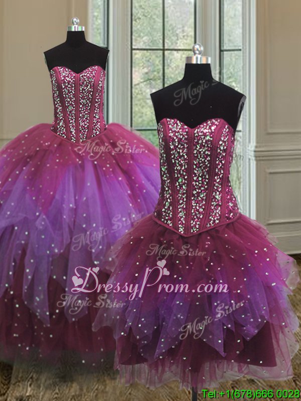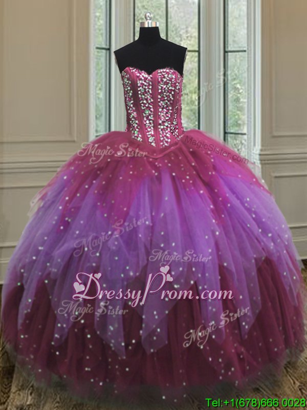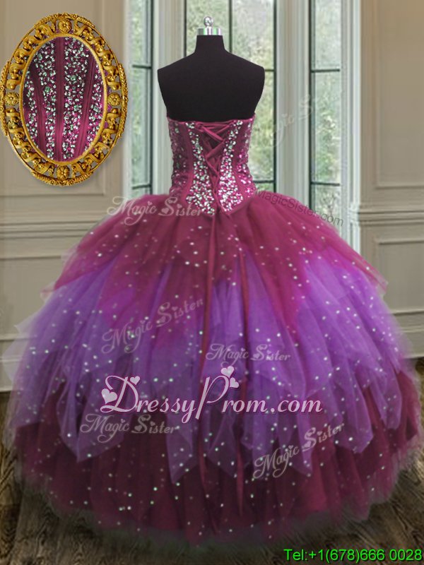Neckline : SweetheartShown Color : Multi-colorSilhouette : Ball GownsSleeve Length : sleevelessHemline : floor lengthBack Detail : Lace upFabric : TulleEmbellishment : Beading,Ruffles,SequinsOccasion : Military Ball,Sweet 16,QuinceaneraSeason : Spring,Summer,Fall,Winter